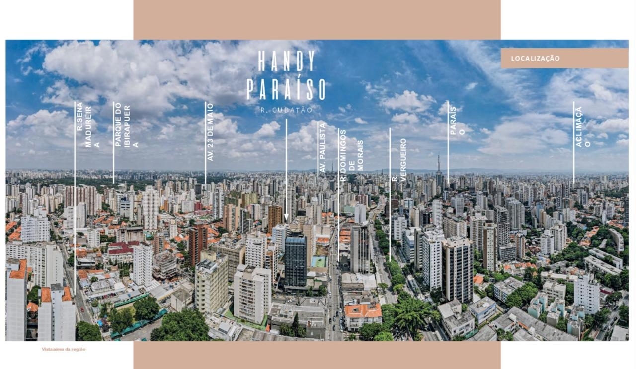 O Handy Paraíso é onde tudo acontece. Perto da Paulista, perto de tudo, perto de você. Torre única com apartamentos studio e opção de junção formando 1 dormitório, a transformação da vida da sua família começa com um apê para chamar de seu. Segurança, tranquilidade, conforto e área de lazer para a diversão da sua família.
