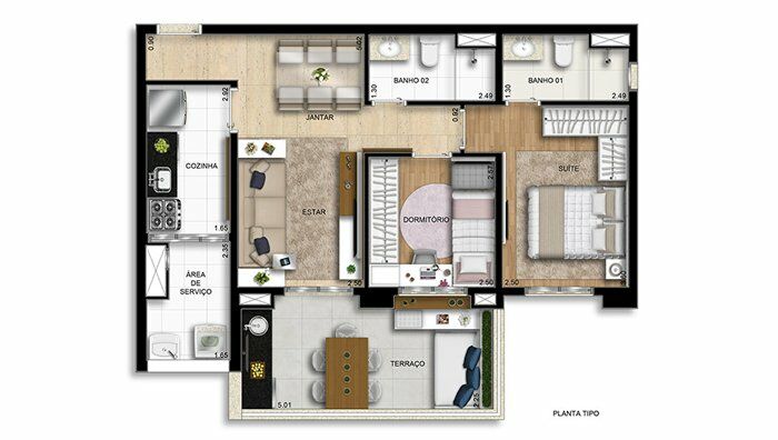 Área Privativa68m²