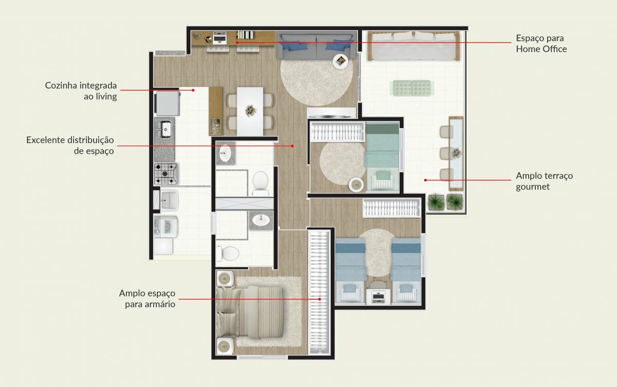 3 Dormitórios, sendo 1 suíte2 Banheiros2 Vagas1 Closet1 Escritório1 Copa1 Sala de TV1 Cozinha1 Lavabo1 Sala de jantar1 Sala de estar1 Área de serviço
